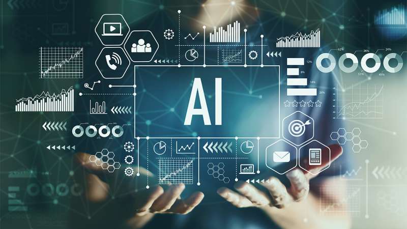 An open book glows, with an AI chip and interconnected holographic technology icons above it against a dark background.